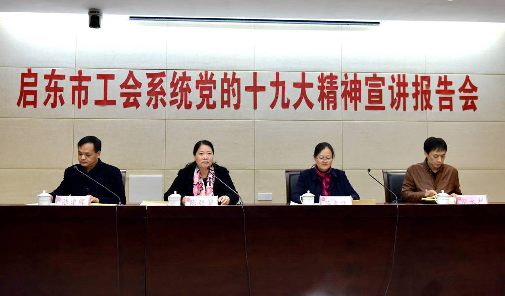 11月23日,启东市总工会在科技楼303举办全市工会系统党的十九大精神宣讲报告会。市总全委会委员、机关全体工作人员、镇乡园区街道直属系统工会主席及工会老干部代表等参加活动。